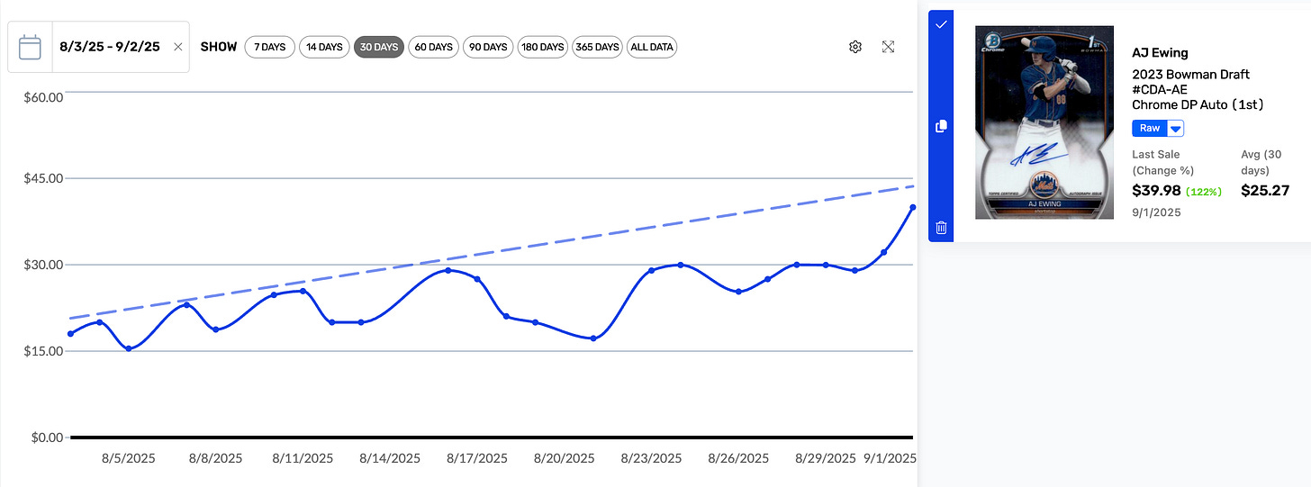 I’m getting all of this data from either the Market Movers or Card Hedge platform. These are not my platforms, I’m simply a user and affiliate of them. If you want to do your own research, you can grab a free trial to Market Movers with code BALLCARDGENIUS. You’d also get 20% off of your membership forever if you wanted to continue once your trial has been completed. You can also grab a free trial for Card Hedge as well.
