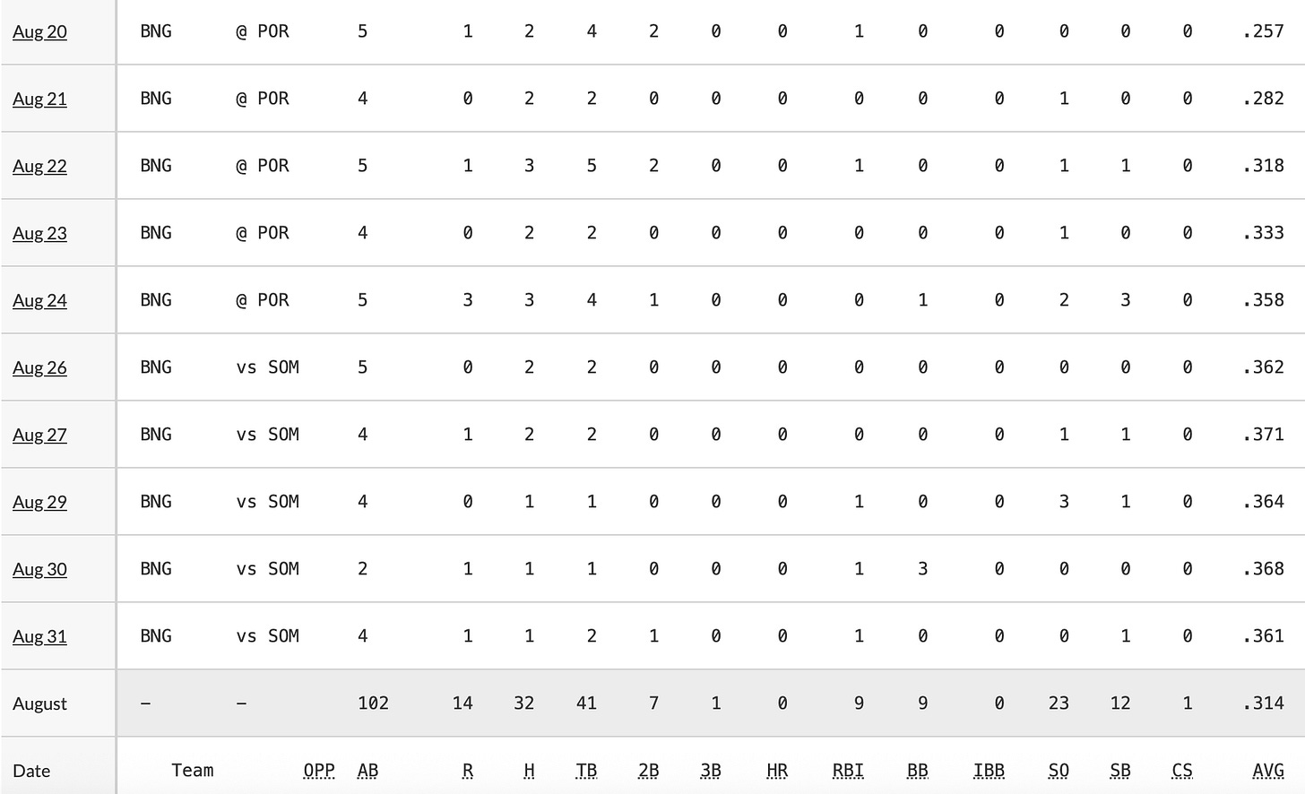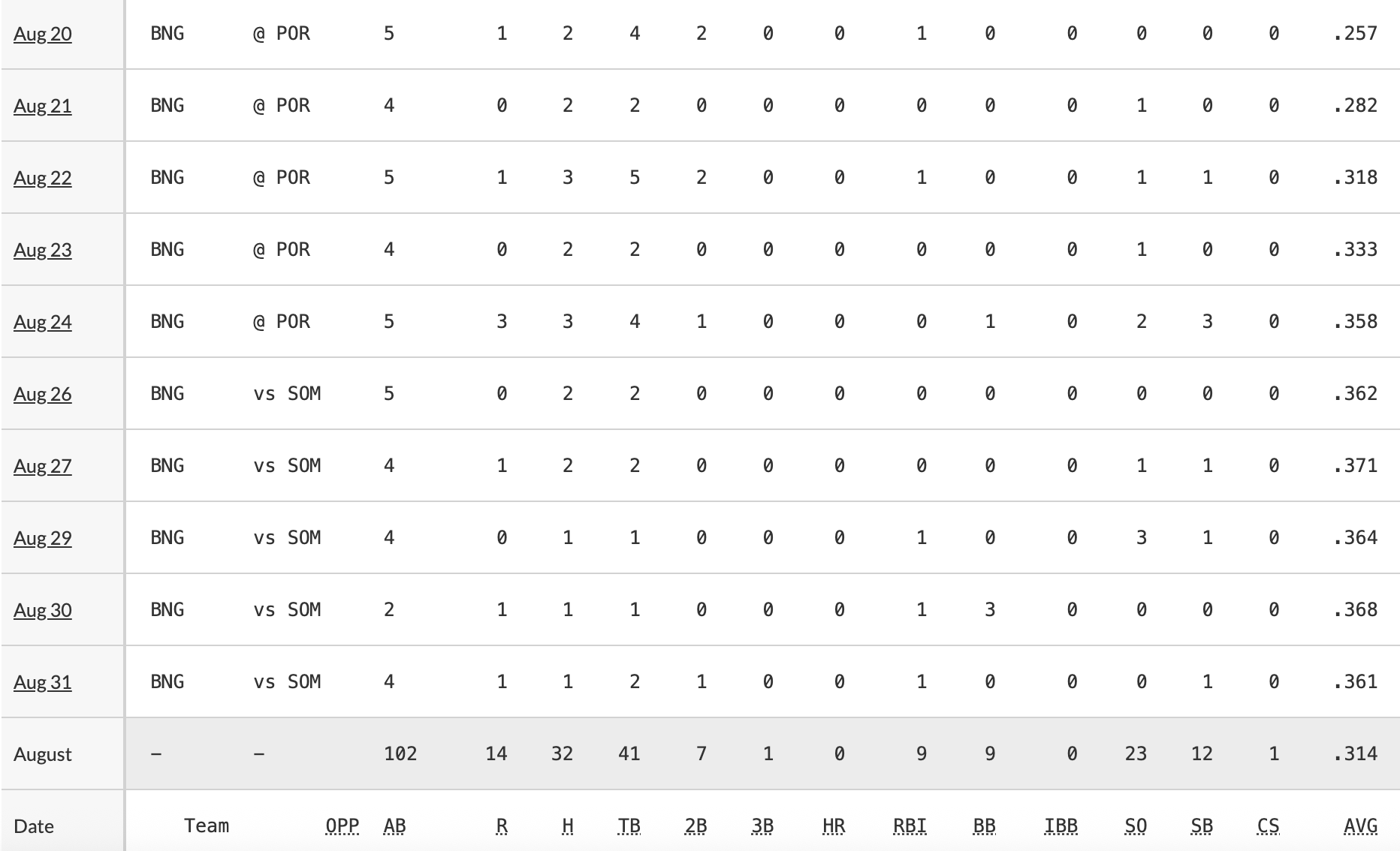Not a power guy, but not sure that matters all that much for someone like Ewing. Take a look at his late-August numbers. Third column of stats from the left are his hits, which by unofficial count looks like 19-for-42 (with 7 SBs).